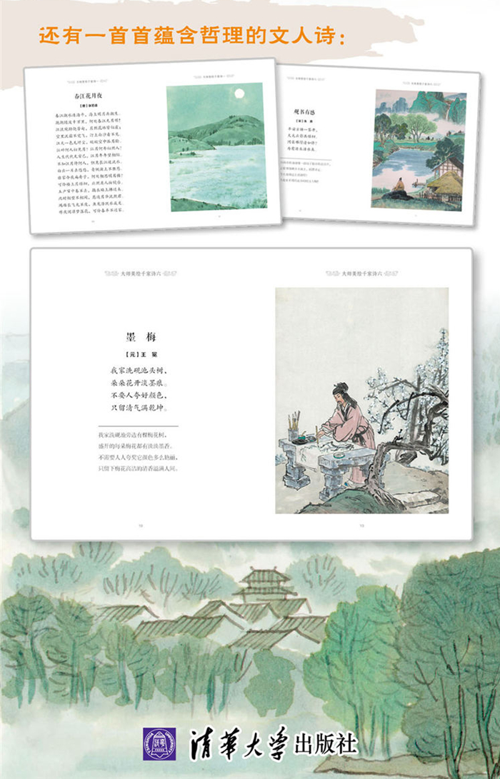 《大师美绘千家诗二》选取唐代的古诗代表作,如《鹿柴》《山居秋暝》《送孟浩然之广陵》《关山月》《登黄鹤楼》等。