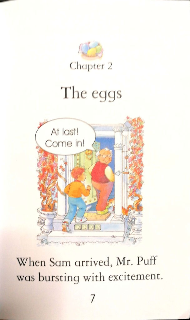 The eccentric Mr.Puff lives next door to Sam in ahouse full of interesting things.Best of all is the basketof giant dinosaur eggs-until they begin to hatch.Thetrouble with dinosaurs is that they grow...and grow.Something needs to be done,and fast!