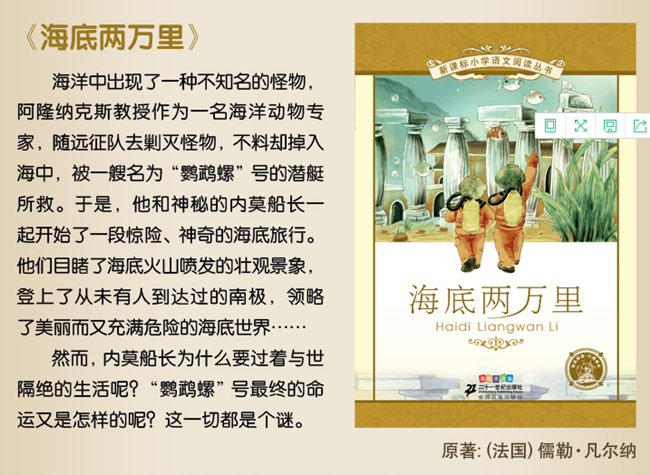 新课标小学语文阅读丛书(彩绘注音版),这套丛书所选有中外名著,有文学经典,都是情趣兼备的,人们百读不厌、早有定评的优秀作品。这套丛书大都根据小学中低年级学生的语文程度进行了改写,深入浅出,文笔生动,趣味盎然。
