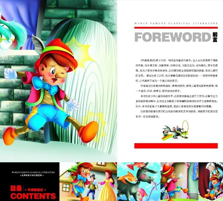 天真无邪、正直勇敢,但又任性、淘气、不守规矩,有时候还喜欢撒点谎——他就是世界文学史上赫赫有名的调皮木偶匹诺曹。一说谎话鼻子就变长,被傻瓜城的法官投进监狱,又被卖到玩具国变成一头驴子,最后在鲨鱼腹中意外与父亲重逢……他那充满传奇色彩的冒险经历陪伴着世界各地无数孩子快乐成长,不愧为“意大利儿童读物的杰作”和“意大利儿童读物中最美的书”。
