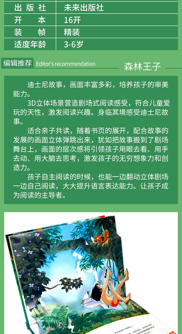 适合亲子共读,随着书页的展开,配合故事的发展的经典画面立体弹跳出来,犹如把故事搬到了剧场舞台上,画面的层次感将引领孩子用眼去看、用手去动、用大脑去思考,激发孩子的无穷想象力和创造力。