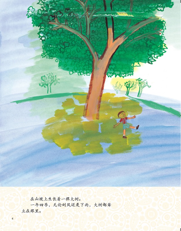 大树十分喜欢这个陪伴它、给它带来快乐的小男孩,小男孩也非常爱这棵给他欢乐和美好童年的大树。
