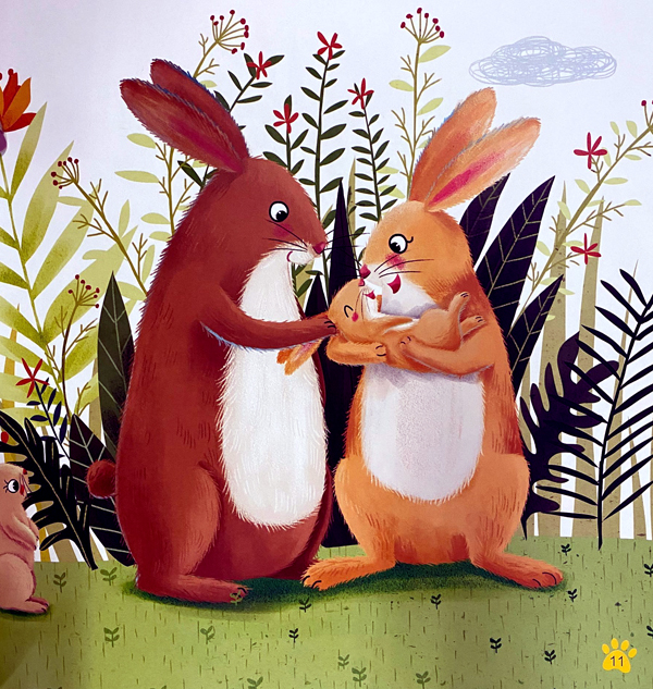 小兔子喜欢兔妈妈开心大笑、抱着她闻花香、轻声哼唱、宠她、爱她、偷偷看她的样子......在小兔子心中,这样的妈妈是*可爱、*美的,可是在兔妈妈眼里,小兔子不管什么模样都是美丽可爱的。温馨有爱的画面、寥寥数语的对白,将母女之间的深厚情义栩栩如生地展现在读者面前。
