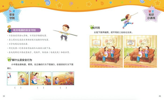 每一册都是以“给父母的话”开始,以“给孩子的游戏”结束。首先教家长如何为孩子讲解安全知识,帮孩子与家长共同巩固安全要点。
