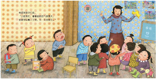 老师对孩子们说:“小朋友们,看看谁吹的气球*,谁就可以戴上王冠,当一天的国王。”听完老师的话,孩子们就开始吹气球。 “呼——呼——”每吹一下,气球就变大一些。