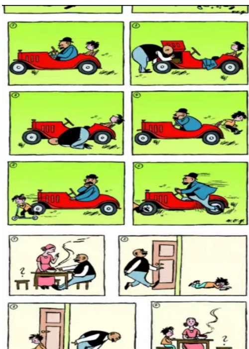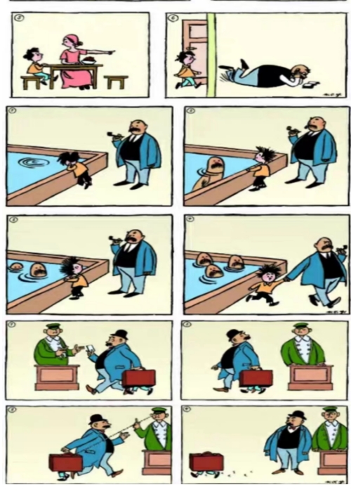 漫画里那个秃头大胡子的父亲,他和蔼慈祥、幽默可爱,陪伴孩子的成长,给予孩子满满的爱。他会在儿子受欺负的时候一边生气一边帮儿子欺负回来,会陪儿子一起恶作剧,会和儿子一起滑冰,一起做游戏,有时候也会犯迷糊,就像一个长不大的老小孩…在这些细节里,藏着这位父亲对儿子绵密而真挚的爱。