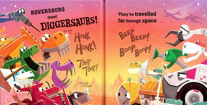 恐龙遇见挖掘者。. . 航天器!这种喜爱事物的混搭非常有趣,押韵朗读, 虽然挖掘龙在户外努力工作,移动地球和花岗岩,但工作发生在外太空的遥远星球上。. . 认识流浪龙——恐龙和宇宙飞船的绝妙组合。他们在火星上忙碌,在地面上挖隧道,测绘新领土,测试土壤样本并种植植物——他们有什么计划?他们可能需要 Diggersaurs 的帮助吗? 这种大声朗读的押韵款待充满了有趣、有特色的恐龙机器。屡获殊荣的畅销书迈克尔·怀特 (Michael Whaite) 以明亮、大胆的色彩和细节让火星栩栩如生。