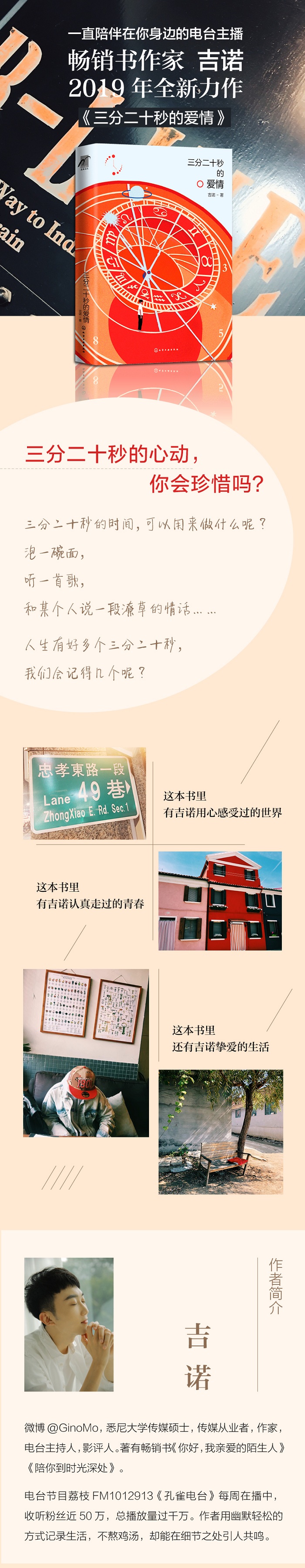 超人气主播吉诺为你讲述他身边的三分二十秒,书中有吉诺独家为你而说的悄悄话。