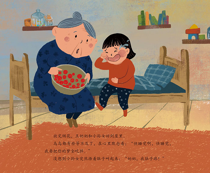 本书是一套节日绘本,通过糖葫芦、糖画两种甜蜜的传统美食讲述了发生在除夕、春节期间的故事,展现了逛庙会、做糖画、贴门神、吃年夜饭等喜庆年俗,折射出中国人的生活智慧和家国情怀,为传统节日注入了新的活力。 这是一套渗透着浓浓年味的节日绘本,包括《呼噜呼噜糖葫芦》和《妙笔糖画》两个故事。《呼噜呼噜糖葫芦》讲述了一个穿梭在梦境与现实之间的奇幻故事,吃梦小精灵为了完成吃梦任务而来到王奶奶家,恰巧赶上王奶奶和小孙女庆祝除夕。