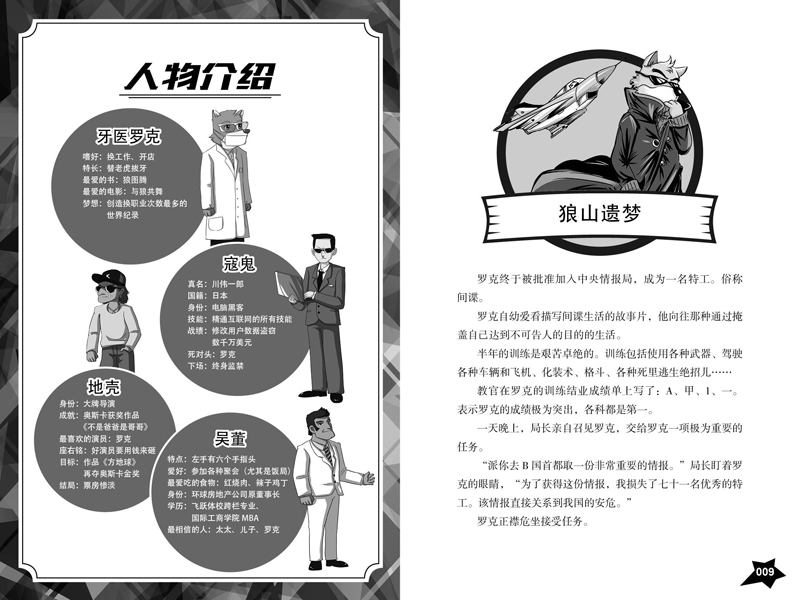 ★罗克个性十足、喜欢思考,是一个有许多奇思妙想的思想家,一个聪明的发明家,一个英明的领导....他有时候趾高气昂,有时候垂头丧气,有时候破涕为笑,也有乐极生悲的时候。它不仅仅是狼,更是一位不甘平庸、从不为失败找借口,始终为成功找方向的罗克先生。
