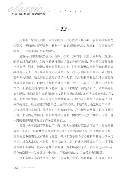 小说不仅情节动人,且语言文字充满了机智的英式幽默,饱满的人物形象和优美的乡镇风光令人沉迷与陶醉。这是一部到现在仍为绝大多数人喜欢的婚恋小说,出版两百年而历久弥新,影响依然深远。