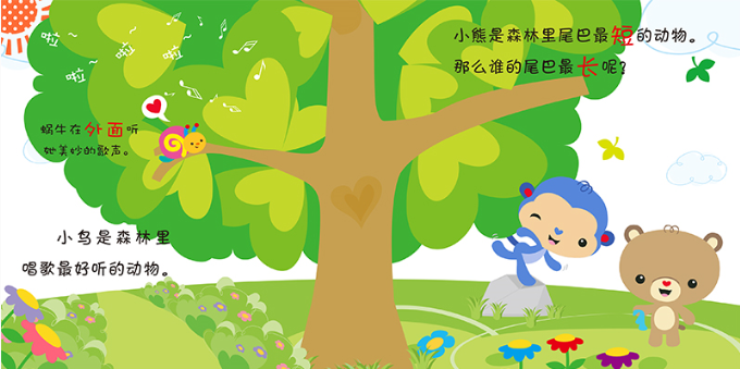 本书一系列共3册,分别为《森林里的智力游戏》《聪明的小刺猬》《比比看》,分别从认知环境,数理认知,对比认知几个方面,让孩子的潜能得到全方面的发展。本书是其中的1册,书名为《比比看》。本书采用婴幼儿图书中比较受欢迎的翻翻书的形式,每页至少有1处翻翻,一个对页1-3处翻翻,通过有趣的故事情节,巧妙的设计,充分调动小朋友的的好奇心和阅读兴趣,让孩子爱上阅读。本书是该系列中的一本,通过直观的图片和场景对比,让小朋友更好地理解反义和对比关系的词语,比如坐着站着,有人没人等相对抽象的概念。本书语言简洁,十分符合婴幼儿的语言发展状况,图片清晰简洁色彩温和,能够很好地保护婴幼儿的新生视力。