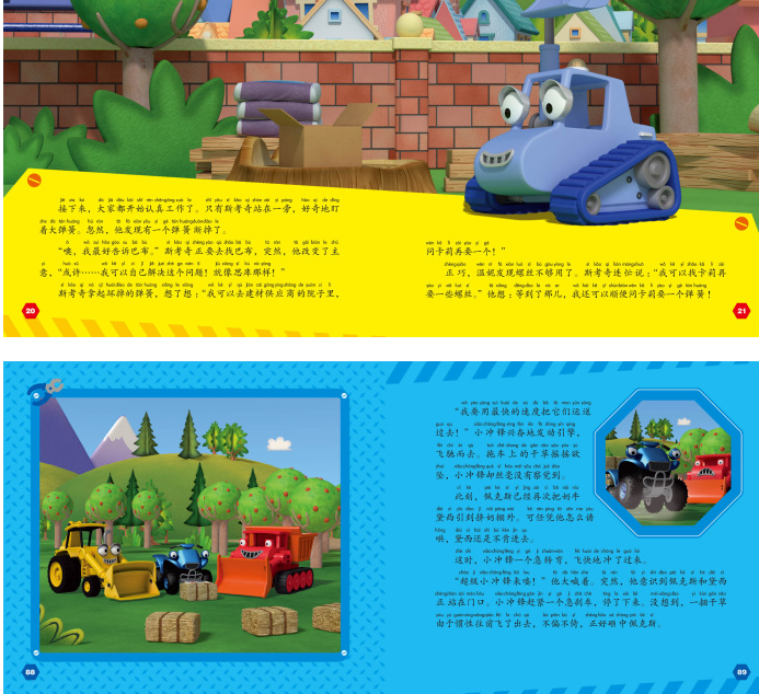 生动精彩的脚本改写,原汁原味的动画风格。每册精选三个故事,配图丰富,色彩明丽,满足小孩的审美体验。出色的工程师巴布、能干的合伙人温妮、聪明的挖掘机三剑客、胆小的吊车罗迪、最兴奋的搅拌机狄丝、爱冒险的越野车小冲锋……每一个都是最真实的你,他们和你一起分享成长趣事,共同成就最好的自己。