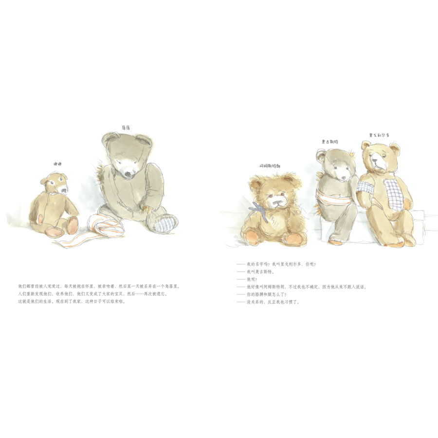 他们都曾经被人宠爱过,每天被抱在怀里,被亲吻着,然后某一天被丢弃在一个角落里。人们重新发现他们,收养他们,他们又变成了大家的宝贝,然后……再次被遗忘。这就是他们的生活。现在到了我家,这种日子可以结束啦。 这本由嘉贝丽·文生*的《玩具熊乐园(精)》是《漂流瓶绘本馆》丛书中的一本,引进版*名绘本,为中国孩子的精神成长和人格构建提供丰富的营养