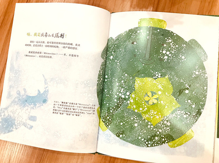 这是一本让人爱不释手的科普绘本。通过病毒小子威利风趣的讲述,我们了解了关于感冒病毒的基础知识,知道了预防感冒的方法。内容权威而生动,没有一点说教。唯美的插画更是让人几乎忘了,我们是在谈论一个不怎么愉快的话题。当威利使出浑身解数,所有的纸巾就都要变得湿乎乎的了。人们似乎应该可怜它,因为没人喜欢它,所有的人都想尽快地摆脱它。它也实在不是一个好东西,总是給我们带来喷嚏,鼻塞,流眼泪,甚至还有头疼。接下来,让我们去看一眼感冒病毒的生活,了解它是怎么进入我们的身体,如何胡作非为。