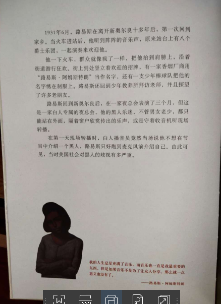 作者殷丽君从爵士乐的发展入手,细腻描绘了路易斯的心路历程与生活态度,并希望他的故事能激励每一位热爱生活的人。绘者弗朗索瓦充分收集与路易斯及爵士乐有关的资料,勾勒出最能传达氛围的情景,生动再现了二十世纪二十年代到七十年代的美国社会风貌。