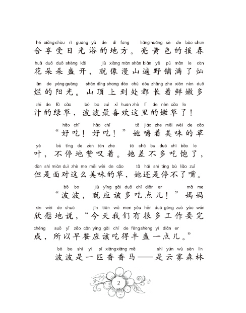 香香马波波一甩动他的尾巴,甜美的花香就传遍了整片森林,不过,她性格温和,害羞,她怕跟陌生人讲话,结交新朋友也有点怯场,有一天,为救下被困在树上的蛛网猫可可,香香马波波出主意,想办法,最终把伙伴们送到了安全的地方……在这一过程里,香香马波波发现自己有了变化。