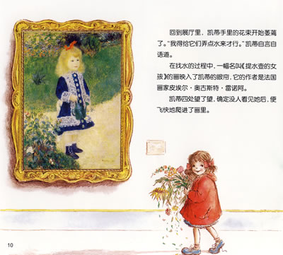 所以,我不得不佩服英国画家詹姆斯?梅修的巧妙安排,也不得不把这样难得的好书分享给大家,他熟知孩子们的心理和愿望,让凯蒂与不同时期不同流派的画作相遇,编织出奇异可爱的冒险故事,让小读者跟随着情节变化走进了这些作品,使这些原本是艺术知识的内容成为美好的情感,自然地传递到小读者的心中。
