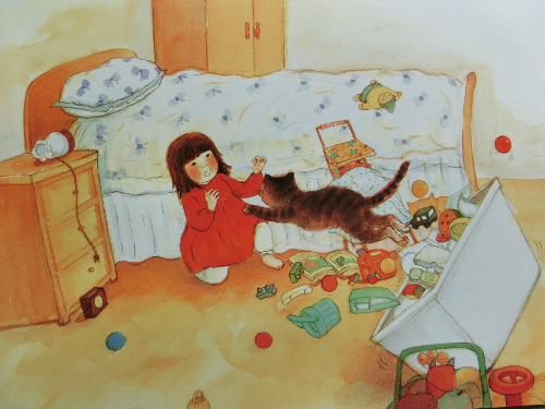 妈妈生病了,特别需要安静。爸爸承担起所有的家务,忙得焦头烂额。没有人说话,没有人玩耍,松利好孤单啊!她本来是打算做个懂事的乖孩子的,从她一遍又一遍重复的那句“现在不可以”完全看得出来。