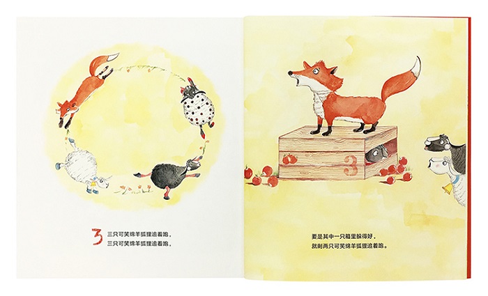 三只可笑绵羊狐狸追着跑,