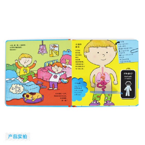 早晨,小波和妹妹伸伸懒腰起床了,他们大大地吸了一口气,拉开了一天的序幕(相应介绍身体的重要器官和功能)。游戏时间到了,小波和妹妹从一堆玩具中挑选了自己喜爱的玩具(介绍大脑的样貌和功能)。户外活动时,小波和妹妹蹦蹦跳跳玩得很开心(介绍心脏和血液循环)。该吃中饭啦,啊呜啊呜,真好吃,吃进嘴里的东西,在身体里会发生什么变化呢(介绍食物的消化)……一天的时间过去了,该睡觉咯,睡觉的时候,身体里也会发生神奇的变化(介绍肌肉和骨骼系统)。