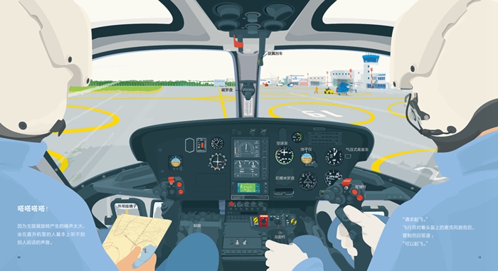 在书的最后还有直升机各部分的剖析图,向小朋友们介绍直升机各部分的名称和作用。让孩子对直升机的内部构造有个更具体的认识。
