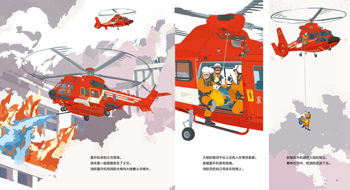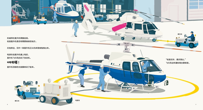 新的一天,直升机开始了新的工作。从机库中拖拽出来,经过通电等一系列的工作,直升机终于起飞了。它这次的任务是为山上小屋的人们送去补给。它的伙伴还有消防直升飞机、救援直升飞机、电视摄像直升机。他们都是怎么工作的呢?让我们和他们一起去他们的工作地点看看吧。