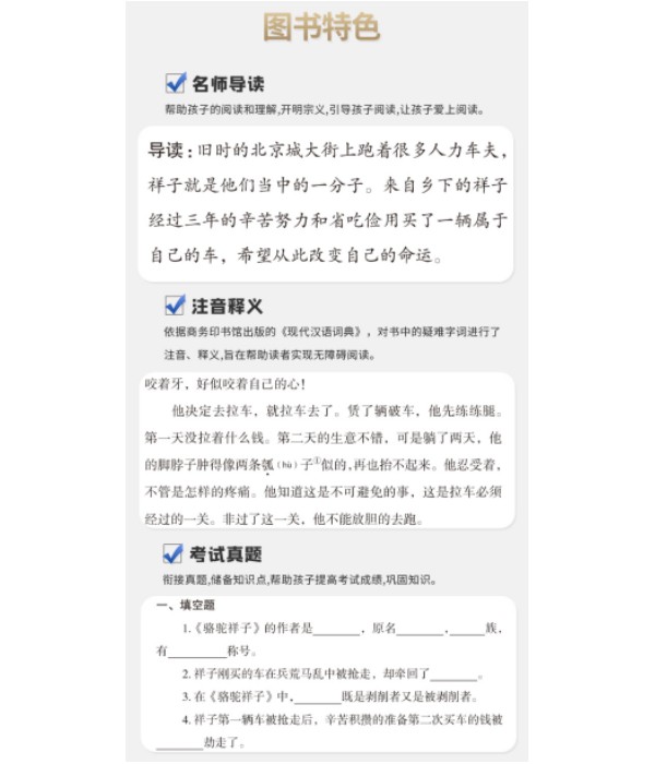 《骆驼祥子》是老舍所著的长篇小说,描述了20世纪20年代军阀混战时期,北平城里的一个年轻好强、充满生命活力的人力车夫祥子三起三落的人生经历,表现了人力车夫的悲惨命运。《骆驼祥子》中的背景世界是黑暗的、畸形的、失衡的中国旧社会,人民过着贫苦的生活,祥子只是广大劳苦大众的代表。他们虽然有了一定的自由,但不得不为生计而奔波,贫穷又剥夺了他们手头仅有的可怜的自由。