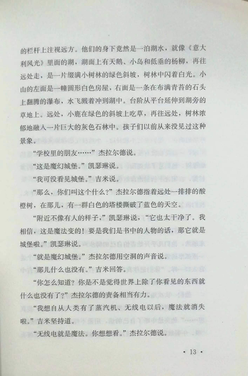 1杰拉尔德掉进了洞里! 他们兄妹三人——杰瑞、吉米和凯瑟琳。杰瑞的名字其实是杰拉尔德,吉米的名字其实叫杰姆士。凯瑟琳这个名字他们也从来不叫,而是叫她凯西。他们都在英格兰西部的一个小镇上学,当然喽,男孩子们在一所学校,而女孩子在另一所学校,他们每个周末在一位和蔼可亲的老小姐家里相会。但是,这种家是那种根本不可能玩耍的地方。你知道这种地方,对吗?这种房子里的气氛让人无法随便谈话,玩耍也好像是怪异和不自然的事情。所以,他们盼望假期,那样他们就可以回家整天在一起了。在家里,玩耍很自然,谈话也很方便,汉普郡的森林里、田野上,到处都是好玩的东西。他们的表妹贝蒂也在那儿,那儿有许多许多可做的事儿。 ……一到家,她就开始出麻疹,结果他们这三个孩子根本就回不去了。你可以想想他们是什么感受。一想到要在何维小姐家里待七个礼拜,他们简直无法忍受,一个个都写信回家反对。这使得他们的父母极为震惊,因为他们一直以为何维小姐和孩子们在一起处得相当不错。经过大量的信件、电报协商之后,父母决定安排男孩们到凯瑟琳的学校去,那儿除了一个法语老师以外,已经没有女学生和女教师了。凯瑟琳说:“这可比在何维小姐家里强。” 男孩们到访,问那位法国小姐他们来这儿方便不方便时,凯瑟琳插嘴说:“我们学校可比你们学校好看,我们桌子上有桌布,窗户上挂着窗帘,你们学校除了木板、桌子就是墨黑一团。” 男孩们在整理行李,凯瑟琳把万寿菊插到了果酱瓶子里,她想把房间装扮得漂亮些,但花园里别的花却很少。前面的花园里有些天竺葵、薄包草、山梗菜,但不让孩子们随便采。 “我们得想种游戏在假期里玩。”凯瑟琳说。喝完了茶,她把男孩们的衣服叠得整整齐齐放进了抽屉,觉得自己特别成熟、细心:“要不,我们写本书吧。” “这你可做不了。”吉米说。 “我没说是我,”凯瑟琳受伤地说,“我是说,我们。” “累死了。”杰拉尔德简洁地回答。 “要是我们写学校的真实生活,人们会夸我们聪明的。” 凯瑟琳坚持说。 “有可能的是开除我们。”杰拉尔德说,“我可不干。我们应该玩玩强盗游戏。要是能找到个洞穴,就在里面过家家、吃饭,那倒是不错。” “这儿可没有什么洞穴,”吉米说,他就喜欢顶撞别人,不管是谁,“而且,你们那亲爱的法国小姐很可能不让我们自个儿出去。” “哦,这个,我们走着瞧。”杰拉尔德说,“我会去跟她谈一谈,就像个神父一样。” “像这样?”凯瑟琳用拇指朝他做了个轻蔑的姿势。 杰拉尔德看着镜子:“给我们的英雄梳梳头发,刷刷衣服,洗干净脸和手,只要一会儿工夫就可以搞定啦。”他一边说一边已经开始动手了。 小姐正坐在屋里读书。一个褐色皮肤的瘦瘦的小男孩来敲门,他的脸长得极为有趣,神态圆滑。每当有人注意他的时候,杰拉尔德总能把自己弄得很有趣,这表情对和陌生成年人打交道非常有用。眼睛睁得大点,嘴角下垂,装出一脸恳切有礼的表情,杰拉尔德俨然就是个一本正经的小家伙了。 “进来。”小姐说,带着明显的法国口音。杰拉尔德进去了。 “什么事儿?”她不耐烦地问。 “希望我没打扰你。”杰拉尔德说,他的嘴里好像含着没有融化的奶油似的。 “但是你打扰了。”她说,声音柔和了些,“你想要什么?” “我想,我应该来跟你问声好。”杰拉尔德说,“因为你现在负责管理学校。”他伸出刚洗过的手。她握住他的手:“你是个懂礼貌的小男孩。” 杰拉尔德甚至比刚才更加彬彬有礼:“真抱歉,在假期里还要你来照顾我们,这真令人讨厌。” “不是这样。”小姐说话了,“我肯定,你们都是好孩子。”杰拉尔德的外表让她几乎相信,他和那两个孩子根本就是天使,还没有沦落到人类的地步,“我能为你们做什么?” “哦,不,谢谢。”杰拉尔德说,“我们一点儿也不想麻烦你。我只是想,要是我们明天一天都待在树林里,带点不用烧的食物,会给你省不少事儿。” “你考虑真周到。”小姐冷淡地说。杰拉尔德的眼睛露出了笑意。小姐捕捉到了这种眼光的闪烁,笑了起来,杰拉尔德也笑了。 “小骗子!”她说,“干吗不直接说你不想让人监管?” “跟大人相处要小心,”杰拉尔德说,“况且,这也不完全是假的。我们不想麻烦你,也不想让你麻烦我们。” “麻烦你们?上帝!你父母同意你们这些天都在林子里过吗?” “是啊。”杰拉尔德诚实地说。 “我可不会比父母管得更严。我通知厨师,你满意了吧?” “相当满意。”杰拉尔德说,“小姐,你真好。你可千万别后悔。我们能为你做什么?帮你绕毛线,或者找眼镜,或者做其他什么?” “你以为我是老奶奶了。”小姐说,笑得更厉害了,“走吧,别太调皮就行。” “运气怎么样?”孩子们问。 “不错。”杰拉尔德故作冷淡地说,“坦诚的年轻人赢得了外国女教师的尊敬。她年轻时,一定是位漂亮姑娘。” “我可不信,她那么严厉。”凯瑟琳说。 “哈哈。”杰拉尔德说,“这是因为你不知道怎么应付她。她对我可不苛刻。” “我看,有人教会了你骗人,对吧?” “才不是呢。我可是个外交家。总之,我们有好日子啦!我是杰克•罗宾逊!” 小姐的确没有凯瑟琳以前见她时那么严厉。她主持了晚餐,是几小时之前涂好的蜜糖面包,都已经变得又干又硬了。杰拉尔德礼貌地递给她黄油和干酪,逼她尝尝面包。 “呸!吃在嘴里跟