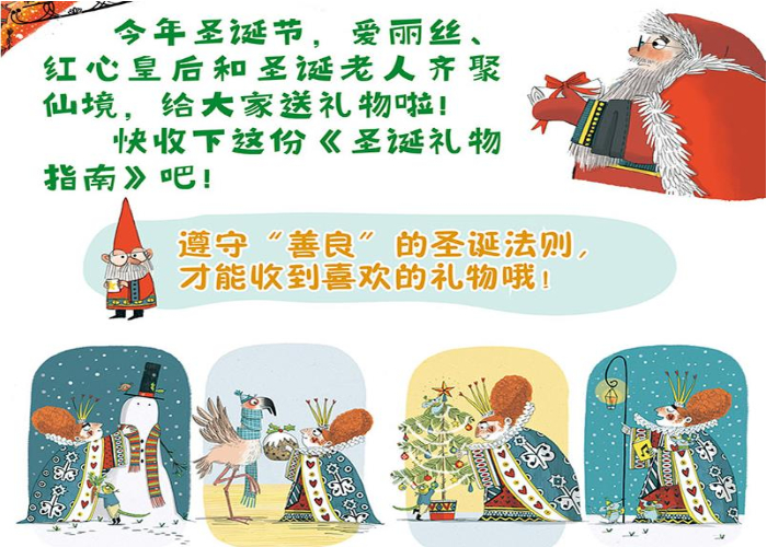 红心皇后不喜欢圣诞节——她禁止了一切圣诞节庆祝活动。原来当她还是个小公主的时候,没有收到期盼已久的圣诞礼物。 很久以后,一个圣诞节前夕,圣诞老人终于把礼物送到了红心皇后手上。可一眨眼,系着红绸带的礼物突然变成了一块黑煤球。圣诞老人也无可奈何,只有红心皇后能将礼物变回原样。不过,她要先改变自己,遵守“善良”的“圣诞法则”。 红心皇后还能得到圣诞礼物吗?仙境还能否亮起温暖的节日灯火?跟着圣诞老人和爱丽丝一起去仙境看看吧!