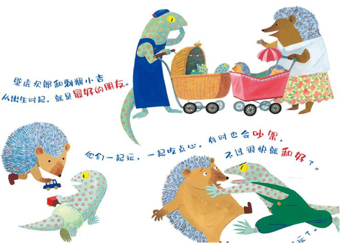 壁虎次郎和刺猬小吉从小就是好朋友。他们经常在一起玩耍、吃点心,亲密无间。当然,有时候也会吵架,但很快就和好了。可是渐渐地,壁虎次郎越来越不喜欢跟小吉玩了,渐渐疏远了小吉。可是小吉却不离不弃,总是跟着次郎,无论次郎怎么对他,他都不生气。有一天,壁虎次郎遇到了生命危险,小吉用他背上的刺救了次郎一命,次郎这才感觉到小吉对他的深切情谊,于是他们又重归于好,再也不分开。 ★这是一个扣人心弦的治愈系童话故事,壁虎次郎和刺猬小吉就像一对欢喜冤家,刺猬小吉尽管身上遍布扎人的刺,可他却很温柔善良,最后反而用自己的“弱点”救了次郎。壁虎次郎和刺猬小吉之间的友谊让我们懂得要珍惜身边的朋友,学会发现他人的闪光点。 ★贝尔格莱德金钢笔奖得主降矢奈奈*新力作,图画温暖治愈,故事一波三折,让孩子在温暖的故事中感受到友情的力量。 ★也许在很多时候,我们都像刺猬小吉一样,不被他人理解...
