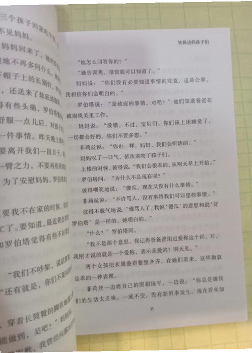 此书描述了一个家庭在一夜之间陷入困境,由富变穷,爸爸蒙受冤枉并抓了起来,妈妈带着三个小家伙搬到了乡下,一个靠着铁路的房子。从此,她们告别了公主王子般的生活,开始过着拮据的日子。作者用悬念做为开端,以自然手法推动着的故事温情,使而逐渐清晰并很好的展现了故事中的美好。