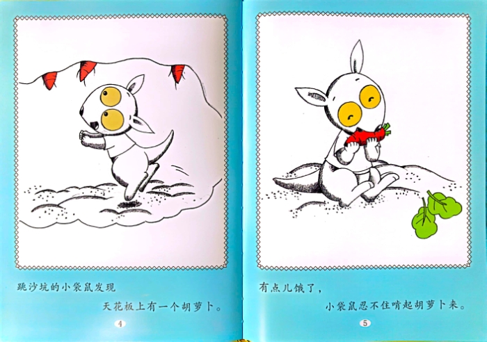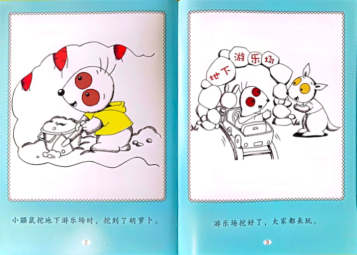 獾先生种了一片萝卜地。小鼹鼠挖游乐场的时候,挖到了萝卜地下。游乐场挖了,大家都来玩。跳沙坑的小袋鼠发现天花板上有一个红萝卜。他用一串糖果换了一个红萝卜。玩单杠的小猴子用一盒饼干换了一个红萝卜。跳格子的小兔发现天花板上有一个红萝卜,“这是我吃的呀!”小兔说着就啃起来。小兔发现自己什么也没带。小兔写了一张条儿,挂到了萝卜根上。獾先生来拔萝了。纸条儿上画得图看不懂。“让我来帮你。”小老鼠丹尼拿过纸条儿。瞧,丹尼帮獾先生拿回一个大萝卜。