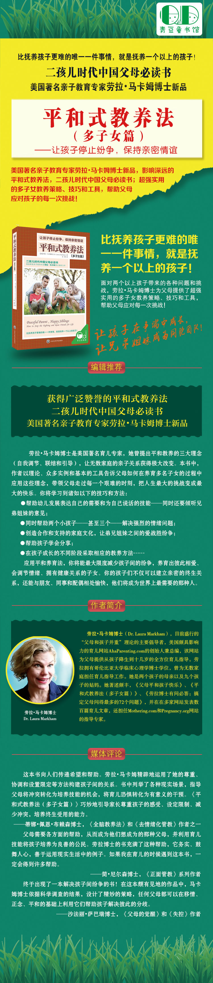 无论你是刚开始考虑要第二个孩子,还是已经因为子女纷争感到沮丧,这本书都是为你而写。我惊讶于它字里行间的智慧、慈悲和那些实用的思想。明智的作者善意地提醒我们,如果我们想让子女关系发生有意义的变化,必须从自己做起。慈悲的劳拉博士同情每一个人——包括同时感到生气和担心的父母。而本书的思想不只是实用和有用,其中不少还非常有趣。只是读一读你就会捧腹大笑,如果再运用它们解决了子女的矛盾,不是更好吗?