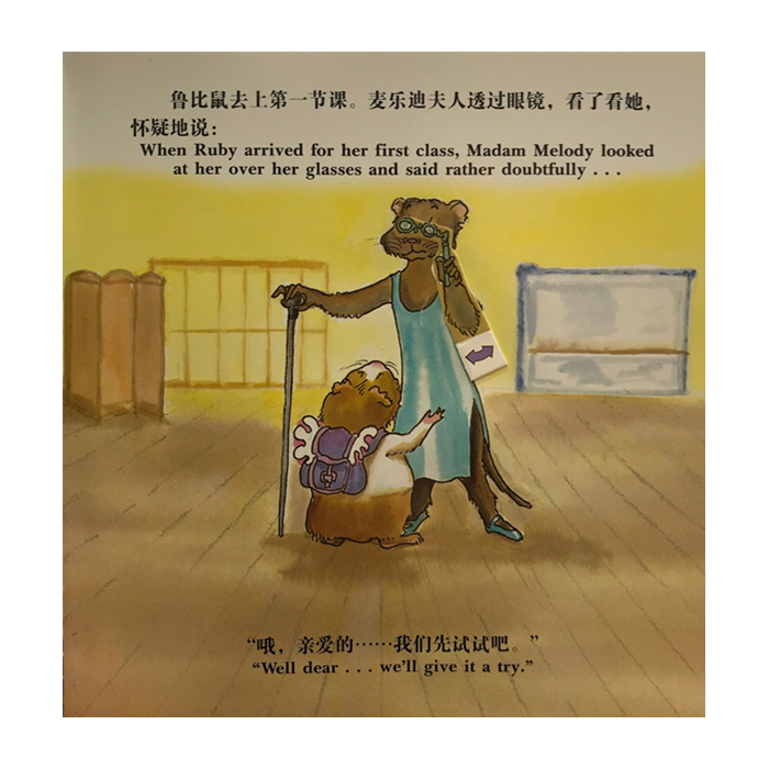鲁比鼠很想成为一名芭蕾舞演员,他她不像别的芭蕾舞演员那样又高又瘦。可是她觉得这没有什么,因为,他相信自己一定行,