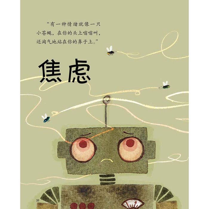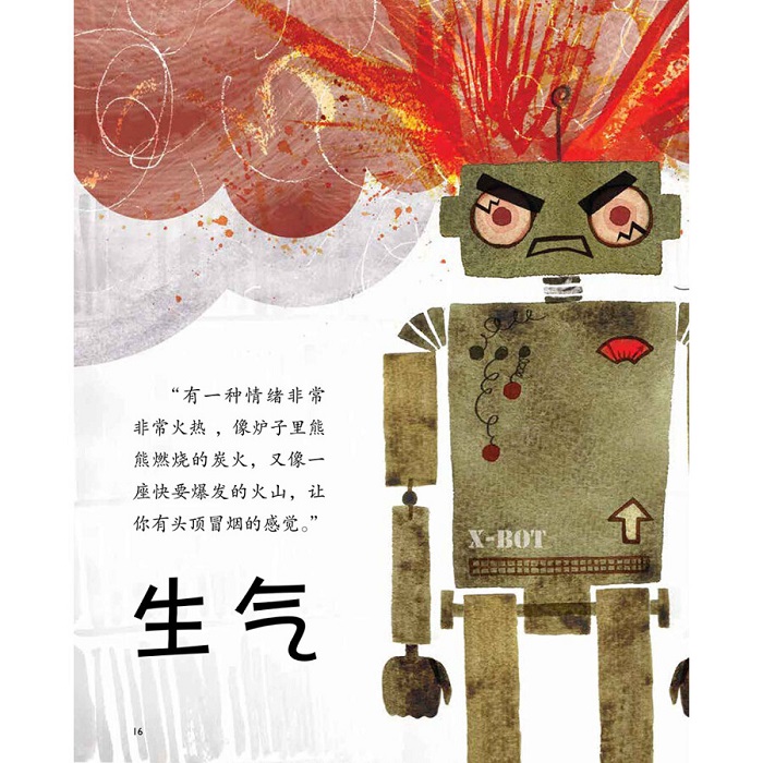 本书给孩子们讲述了一个有趣的故事,一个小女孩是如何通过描述情绪发生的情景,帮助她的机器人朋友感知各种情绪的。你在和孩子一起看这本书的时候,如果孩子有跟小女孩一样的感受,你也可以和孩子一起讨论这些情绪。积极鼓励孩子参与讨论,引导孩子认识和管理自己的情绪,并且教给孩子一些情绪管理的方法和策略。
