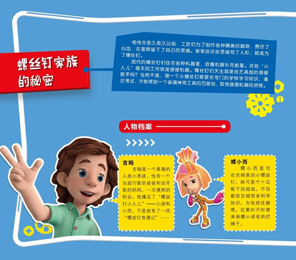 激发孩子动手实验的兴趣!螺丝钉的人物设定是擅长修理的小小工匠,这会让孩子们觉得能自己动手修理东西是一件很酷的事情,故事中所讲的一切他们都会想要去亲手试一试,这是培养孩子动手操作能力非常好的契机。