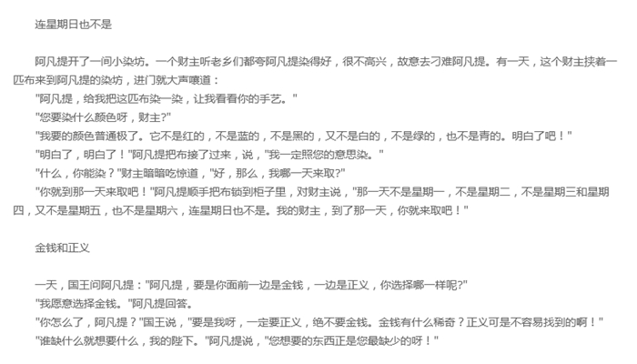 赵世杰是研究阿凡提的专家,本书篇目选自他编译的1995年版《阿凡提笑话故事精粹》。作为“阿凡提之父”,他在1958年推出首本维、汉双语的《阿凡提的故事》,此后,阿凡提这个民间传奇人物智慧风趣、骑着毛驴、富有正义感的形象深入人心,被列入“世界民间艺术形象”之列。本次选录有代表性的故事百余则,配以插图约四十幅,结合赵世杰重新编译修订后的语言,让阿凡提在今日百花盛放的文学殿堂里,重新焕发出不一样的光彩,丝毫不显老旧。