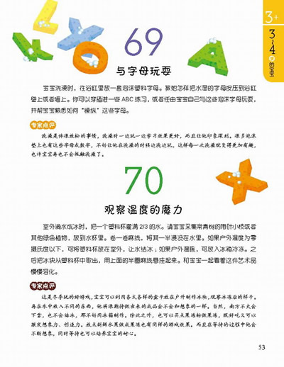 金宝贝是国际领先的早教机构,一直以其数量众多的早教游戏而闻名。我们所选游戏库中简单,适合家庭操作的部分,汇集成书,让新手父母们能够利用生活中常见的情景和道具对宝宝进行早教。这些集益智与创造力于一体的游戏活动,不仅能最大限度地开发宝宝的各种潜能,增进与父母的感情,更能让宝宝在快乐中增长智慧、健康成长。