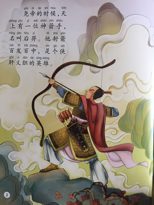 《后羿射日》的传说出自《山海经》《书·尧典》《十州记》《淮南子》《天问》等。讲述了后羿把天空中的十个太阳射掉九个,救人民于水火之中的故事。相传后羿是夏朝东方族有穷氏的首领,善于射箭,民间奉其为“箭神”。
