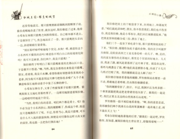 ★布赖恩?雅克的文字我十分喜欢,他调动自己最大的想象力,虚构了以动物为主角的红城王国。这种迷人的动物小说能够给予我们特殊的精神价值,那些有声有色的,富有感情、情趣与美感甚至让人惊心动魄的文字,给予我们种种启示:动物世界的强者生存的原则,让我们领略到生存的严酷性;动物世界的原始冲动与生命的坚韧,让因为现代文明而变得缺乏血色与激情的我们受到感染与鼓舞;动物世界的纯真、毫无做作与虚伪的品性,让我们感到汗颜……雅克让我们得以重温大自然的壮烈与温情,得到精神的洗礼。 ——北京大学教授、著名作家:曹文轩