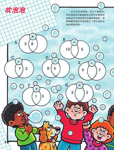 帮助幼儿轻松走进数学乐园,它的主要内容是掌握10及10以内的基本运算;了解时间、长度等量的表示方法,能将基本运算运用于实际生活中。通过各种丰富有趣的问题对数学产生浓厚的兴趣,初步建立数学思维。