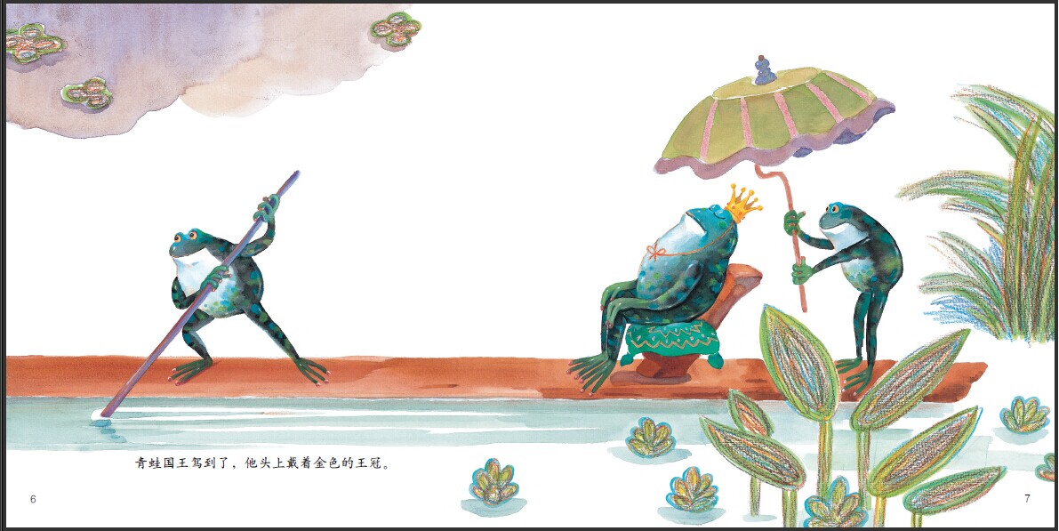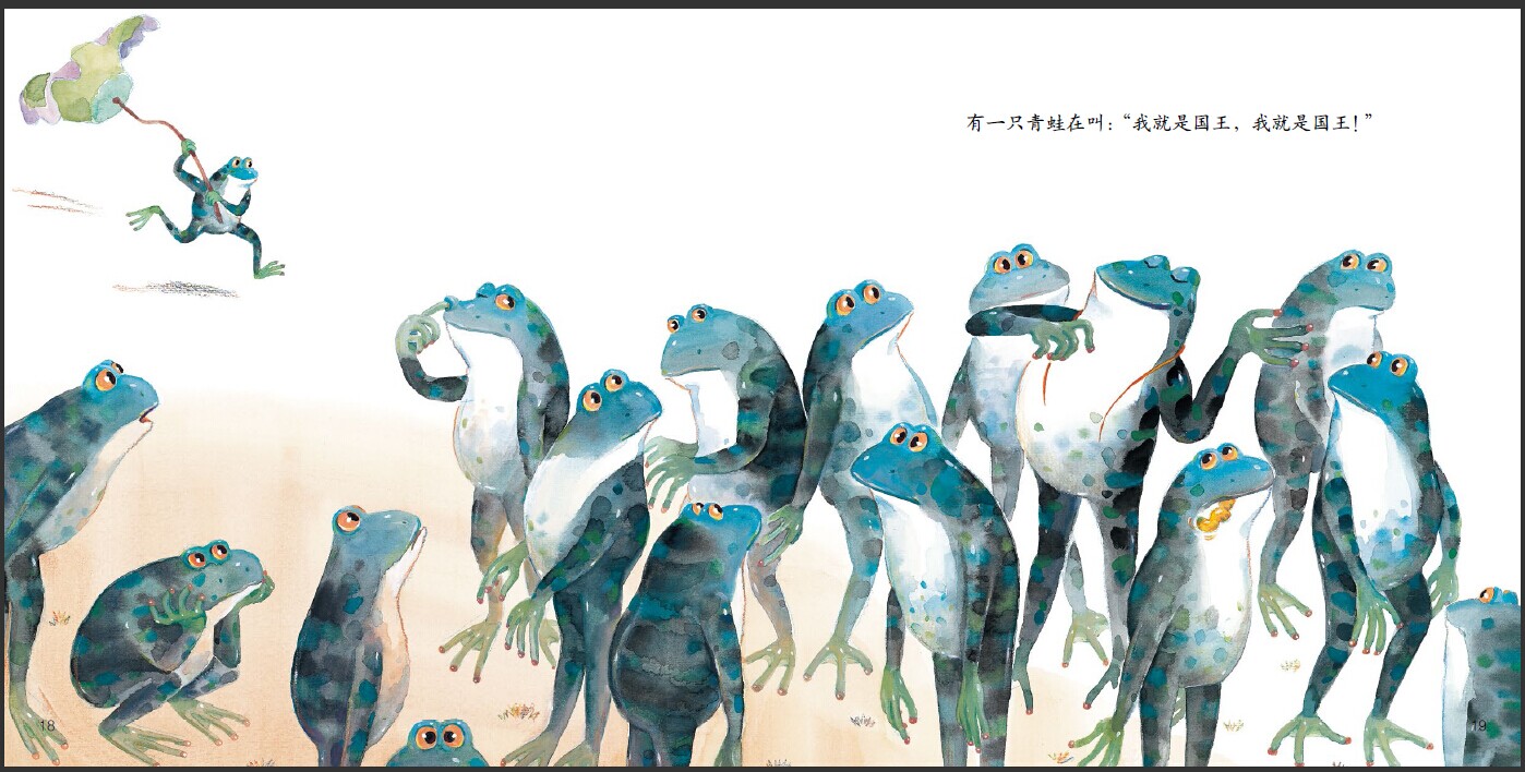 池塘里生活着许多青蛙,他们都长得一模一样,可是青蛙国王可不这么认为,他觉得自己长得很高贵,因为他有一个金灿灿的王冠。一阵大风吹掉了他的王冠,没有了王冠的国王会怎么样呢?