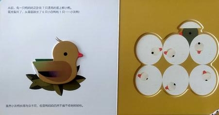 《小手摸摸读童话·丑小鸭》是一本引进自法国的讲述丑小鸭历经困难找到自我的创意图画书。故事的主要内容是:一只小鸭子被孵出来了,大家都叫它丑小鸭。因为丑小鸭长得与众不同,所以常常被嘲笑,也常常挨打。当他看到优雅的天鹅从寒冷的地方飞来时,它感到很兴奋。它飞向了天鹅。大家终于看出来,原来丑小鸭不是一只鸭子,而是一只美丽的天鹅。
