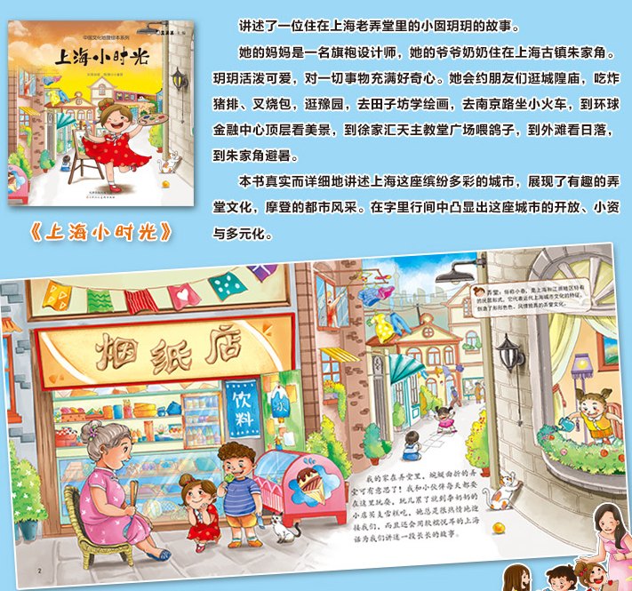 我们这套书分别讲述了北京、上海、西安、杭州、青岛这五座著名的城市。通过居住在这些城市里的小孩京京、玥玥、雨儿、安安、青青的视角来讲述他们各自家乡的风土人情,例如吃食、建筑、风俗等等。