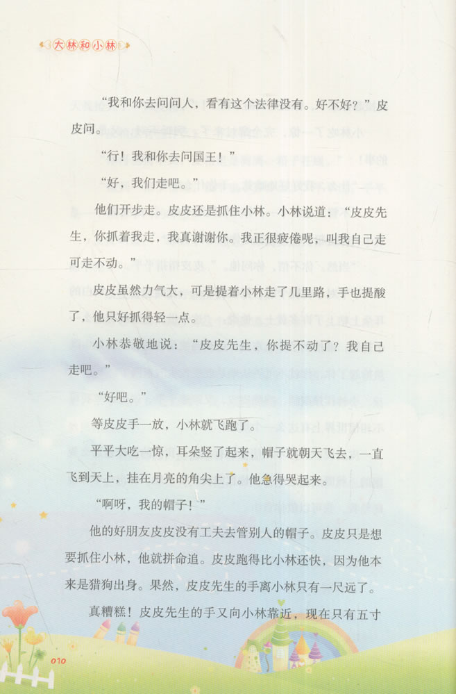 《大林和小林》讲述了一对兄弟大林和小林的故事。大林好吃懒做,*后饿死在钻石堆里。小林勤劳勇敢,成长为一个优秀的青年。故事中的鳄鱼小姐、蔷薇公主、狐狸平平等形象滑稽有趣,小林和朋友一起战胜邪恶时的机智和勇气值得小读者学习。