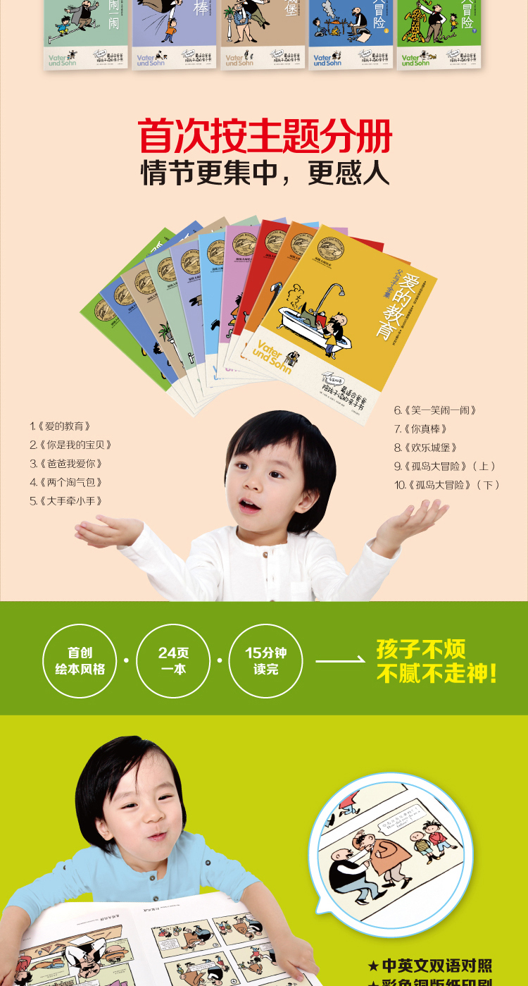 德国漫画大师埃-奥-卜劳恩的传世名作,1934年12月在战争中德国,一部反映普通民众父子间生活、情感的漫画在《柏林画报》上连载,漫画充满了人性的温情和幽默,把普通民众的生活通过父子间的表露刻画的如此纯真。漫溢着暖暖的人情味。