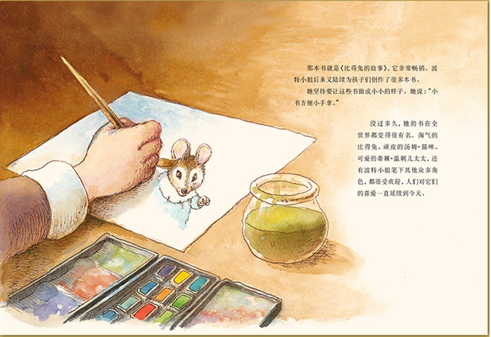 比阿特丽克斯·波特,1866年7月28日出生于英国伦敦的一个中产阶级家庭,她主要是由家庭教师照顾。虽然父母对她的陪伴并不多,但是在她很小的时候,妈妈便将自己的颜料盒送给了她。用这个颜料盒,她画兔子、老鼠和其他养在家里的小宠物。