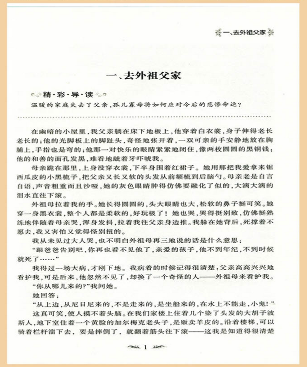 《童年》是高尔基以自身经历为原型创作的自传体小说三部曲中的第一部(其他两部分别为《在人间》、《我的大学》)。讲述了阿廖沙(高尔基的乳名)三岁到十岁这一时期的童年生活,生动地再现了19世纪七八十年代前苏联下层人民的生活状况,写出了高尔基对苦难的认识,对社会人生的独特见解,字里行间涌动着一股生生不息的热望与坚强。
