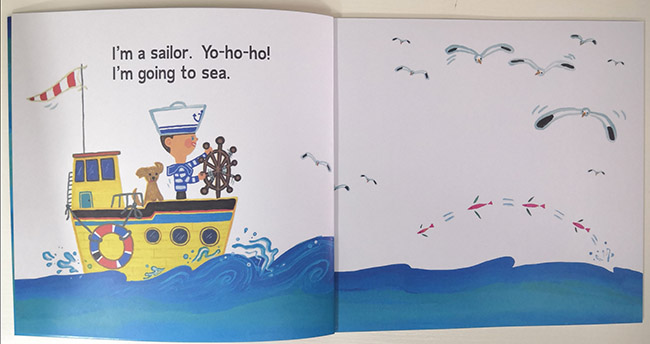 两个小水手乘着轮船出海了。他们十分好奇,大海里究竟住着哪些动物呢?那就跳进大海看看吧。